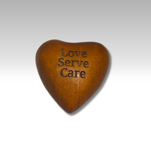 Love, Serve, Care Carved & Engraved Heart